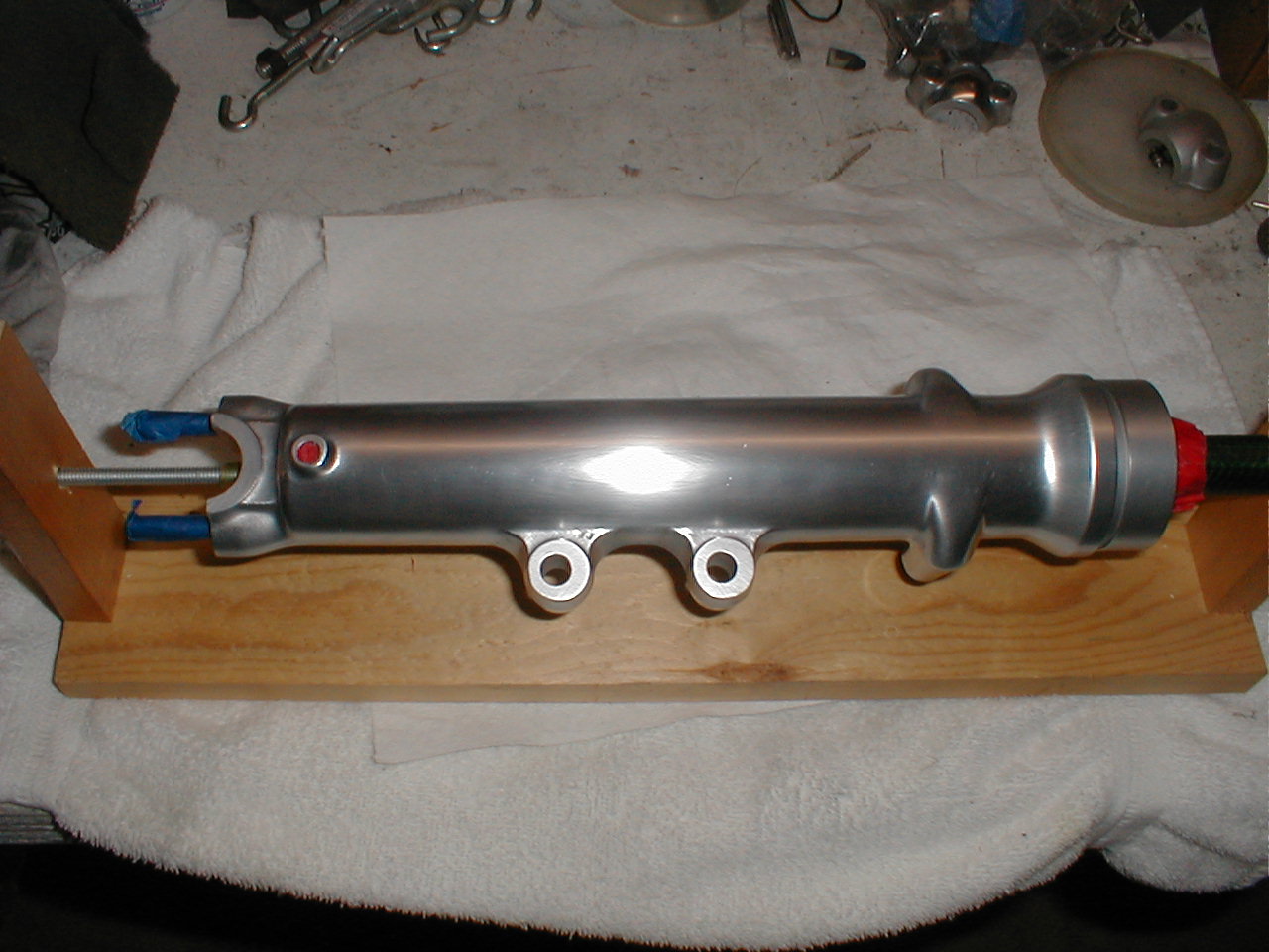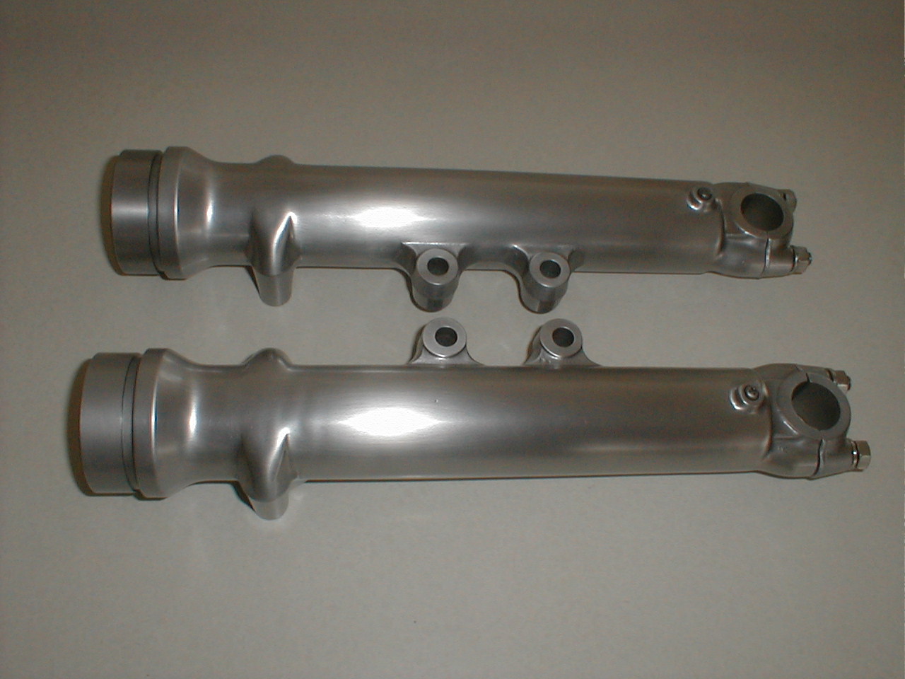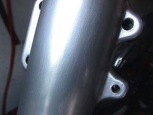 Therefore, I decided to start over. Described here is how I achieved the satin look that finally satisfied me. Note that I was specifically not seeking perfection for my project, as these forks were not perfect coming from the factory. Rather, my objective was to duplicate the original appearance as closely as possible. I will also not describe the disassembly of the shock assembly, as there are a number of service manuals that describe this process in detail.