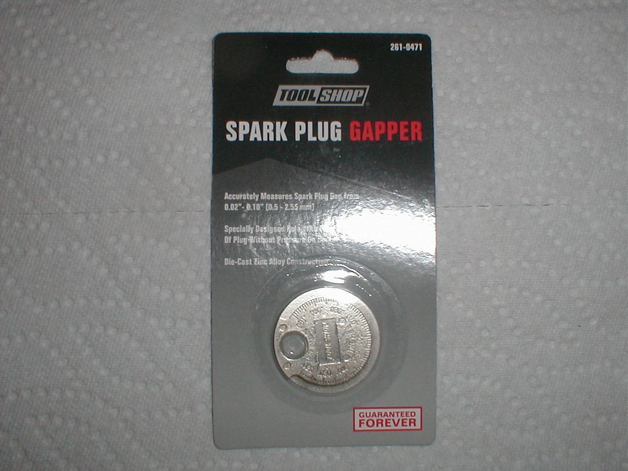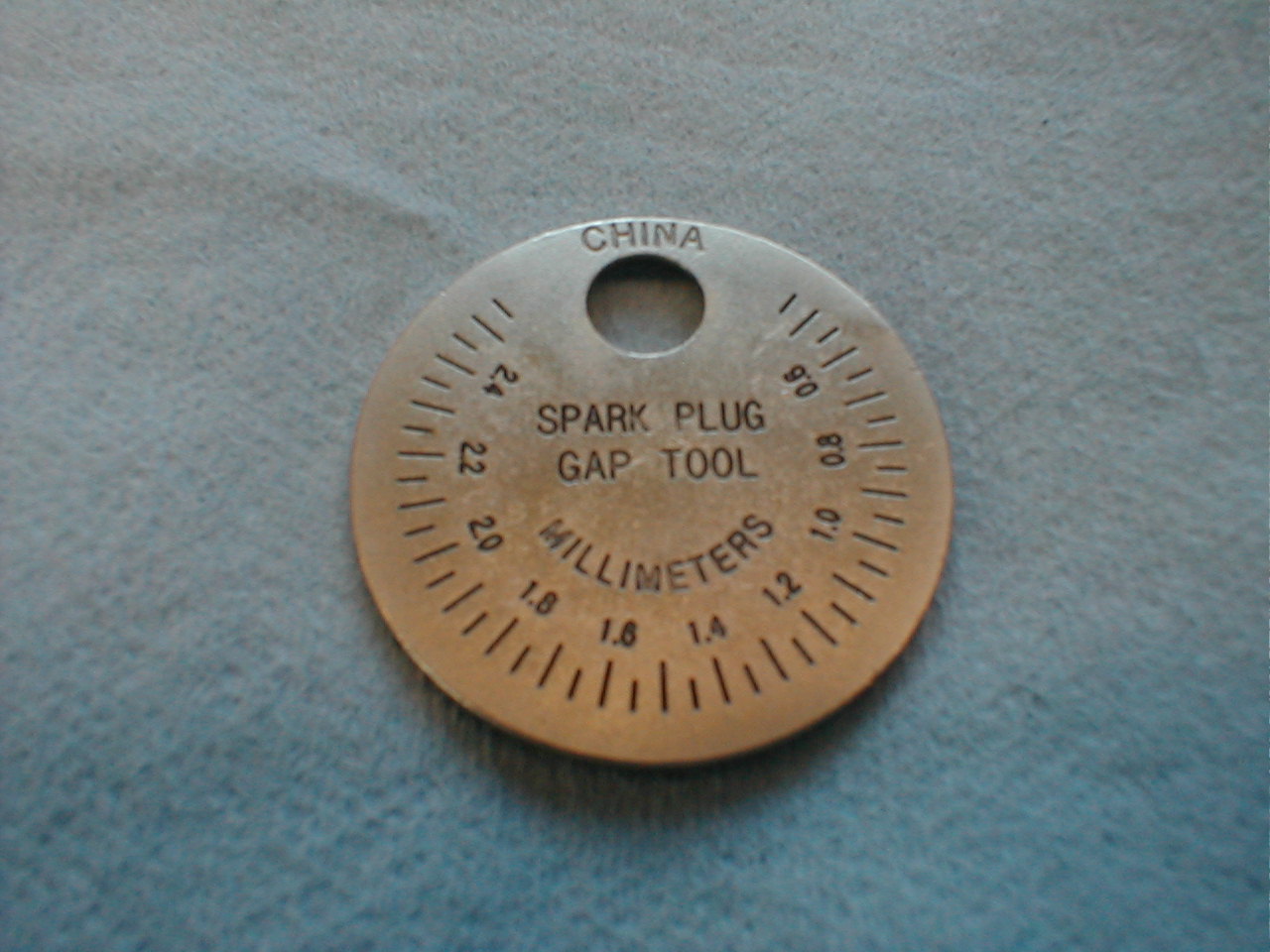 I saw this simple little spark plug gaping tool at my local big-box store the other day while I was browsing about. It was inexpensive, less than $2.00 so I picked it up. This gauge is two-sided, one being imperial graduations (thousands of an inch), the reverse metric.