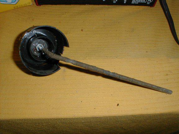 I took a plastic paint can cap, and cut a hole in the middle using a hobby knife. The anode is mounted with washers and nuts on the top and bottom, to make sure it doesn’t shift at all. Look carefully at the cleaned anode, you can see where it’s been worn away… that’s why it’s called “sacrificial”…